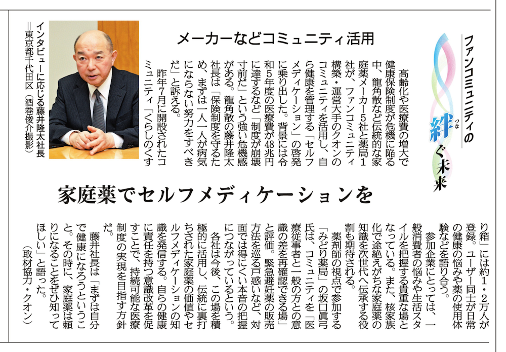 産経新聞に、オンラインコミュニティ「くらしのくすり箱」の取り組みが掲載されました